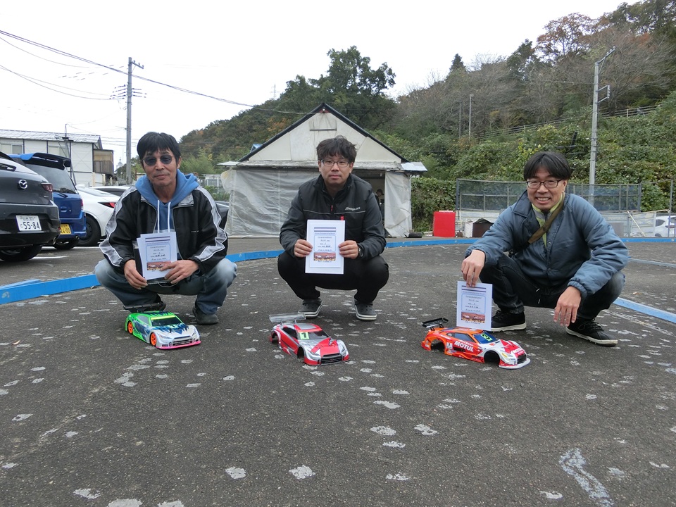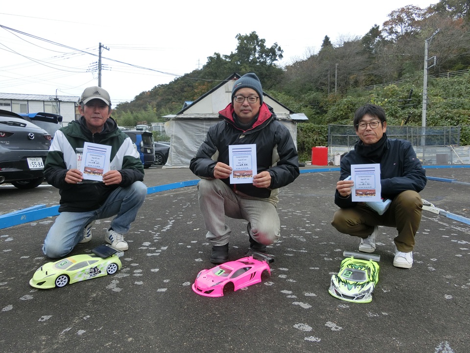 ミニクラスは、PP相澤さんがスタート直後から後続を一気に突き放し独走態勢に持ち込む。追う2位の野村さんだったが、久々参加のレースブランクもあり、なかなかペースを上げられない。中盤には5秒差を付けられ、かなり苦しい展開に。3位争いは序盤、中澤さんがキープしていたが、ミスが出てしまい後退、代わって梅森さんが3位浮上。レース後半は上位陣の差も開いてしまい、淡々とレースが進行。結局、相澤さんが独走優勝、2位野村さん、3位梅森さんとなった。